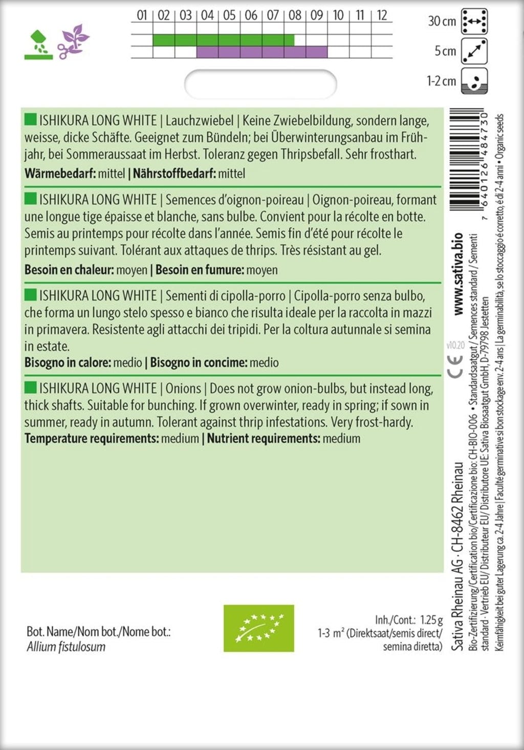 Sativa Semillas de cebolleta ecológica "Ishikura Long White"
