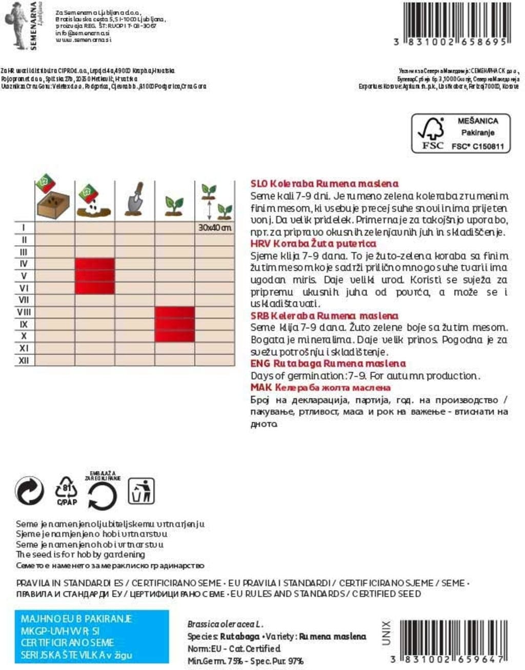 | Fabricante: | Semenarna Ljubljana d.o.o., Bratislavska Cesta 5, 1000, Ljubljana, Eslovenia, info@semenarna.si, www.semenarna.si |