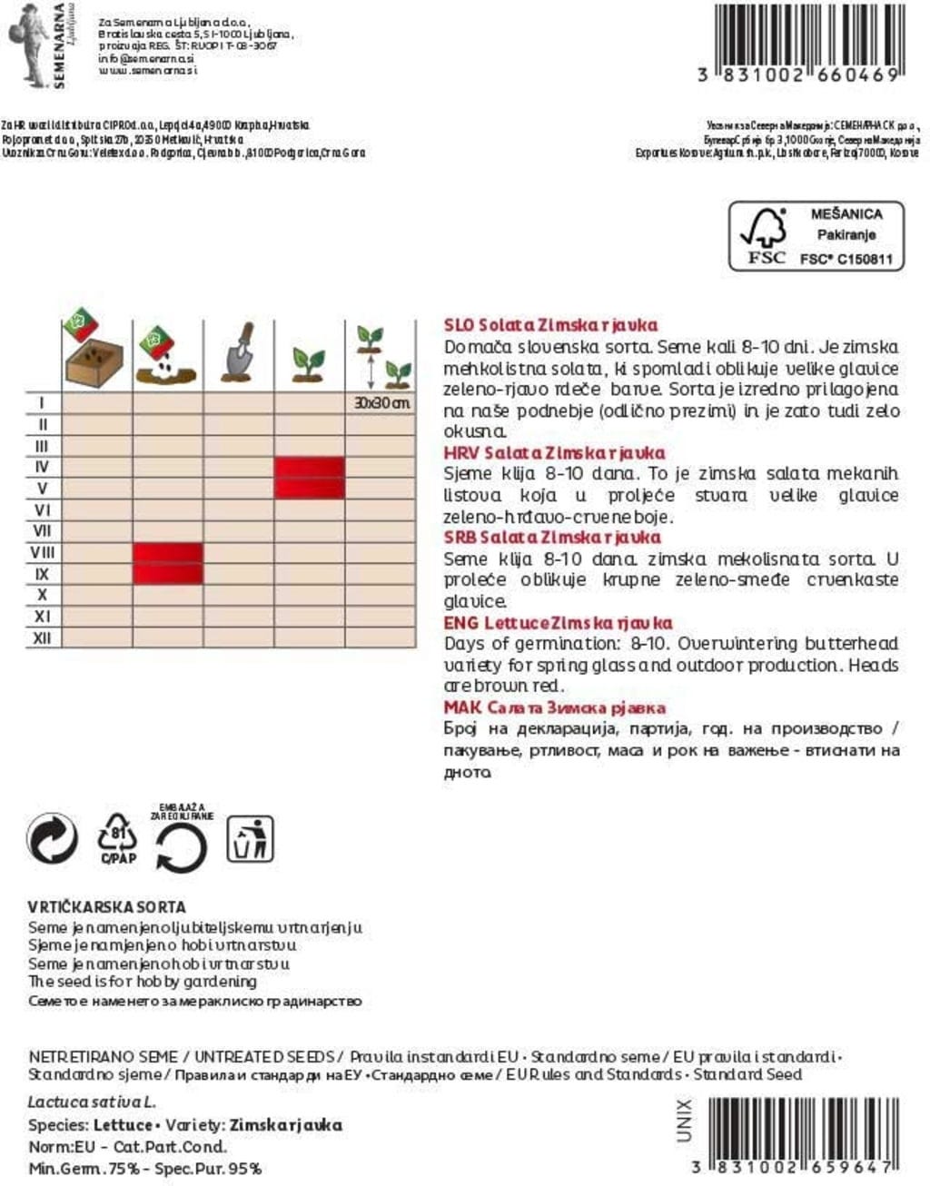 Semenarna Ljubljana Semillas de Lechuga de Invierno "Zimska Rjavka", 5 g