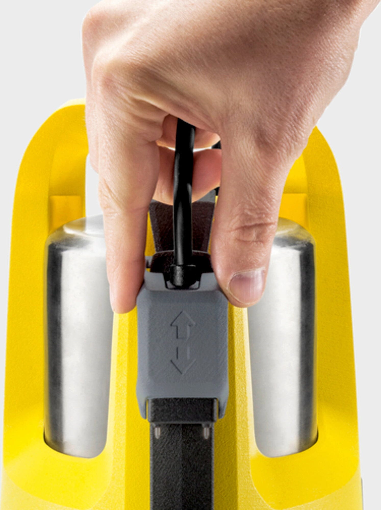 El Level Sensor integrado, ajustable de forma continua, activa automáticamente la bomba sumergible de achique al entrar en contacto con el agua y permite el funcionamiento automático o manual. Gracias a las patas plegables, el bombeo empieza ya con niveles de agua muy bajos. Durante el funcionamiento, el agua puede bombearse hasta un nivel residual de aproximadamente 1 mm, lo que permite dejar la superficie casi seca.