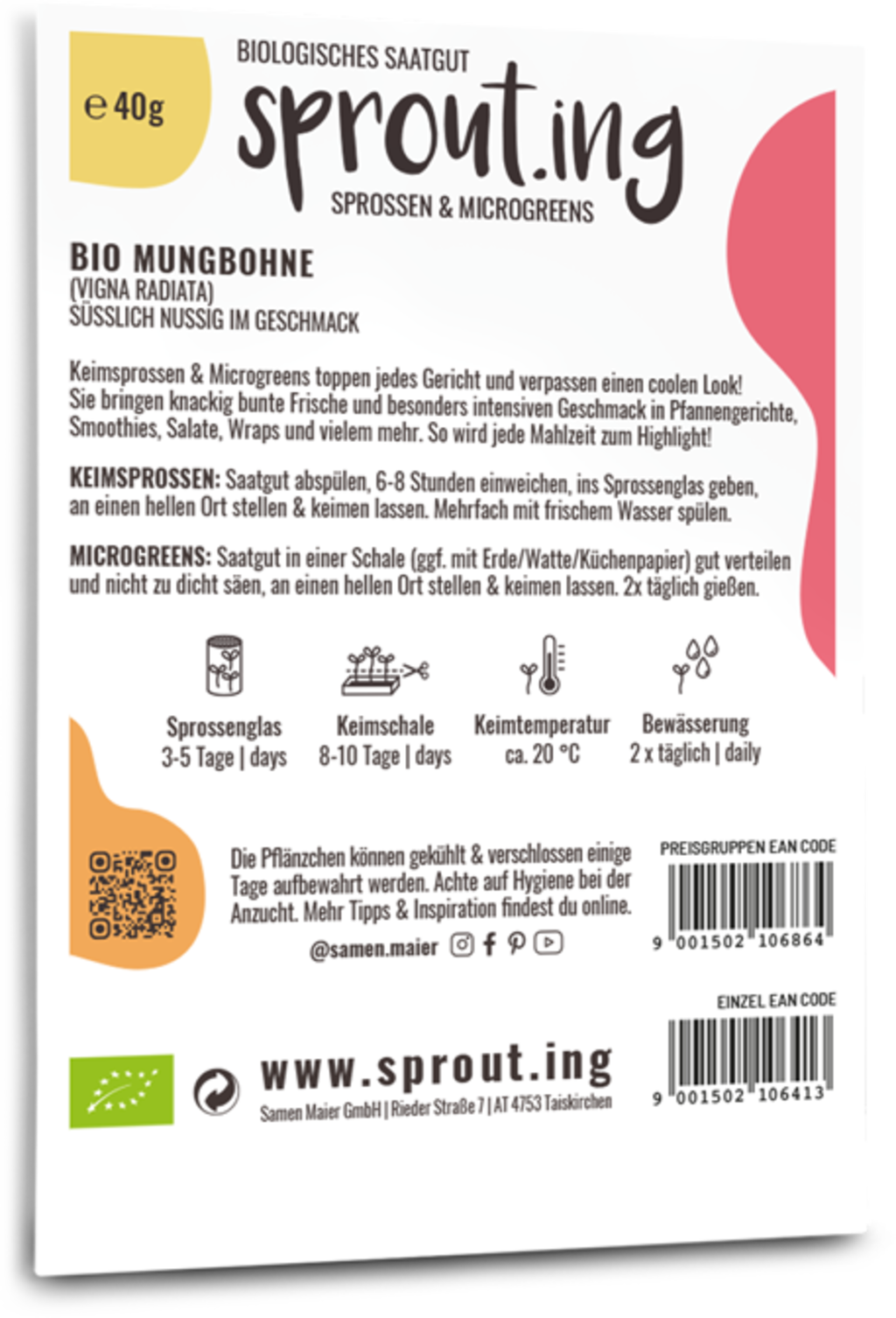 Los brotes de soja mungo, dulces y con sabor a nuez, se pueden utilizar de muchas maneras en la cocina: como topping o como ingrediente para salteados, batidos, ensaladas, wraps y mucho más. Hacen que cada comida sea un punto culminante y aportan frescura crujiente a su plato.