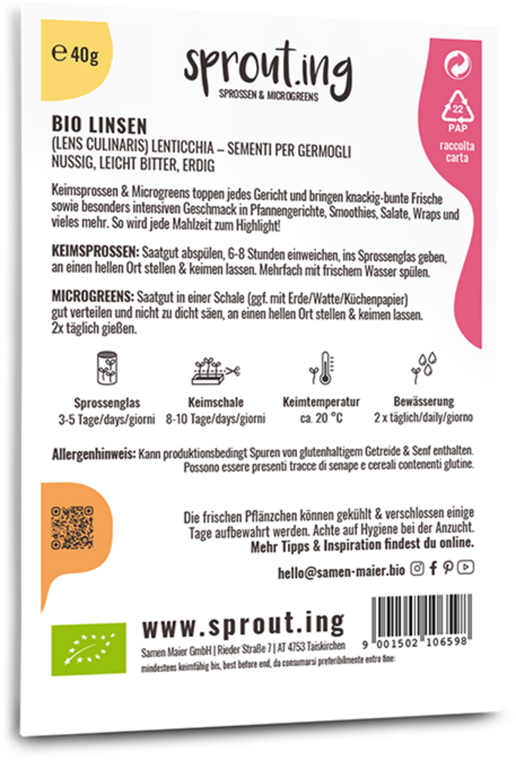 Sprout.ing Lentejas ecológicas, 40 g