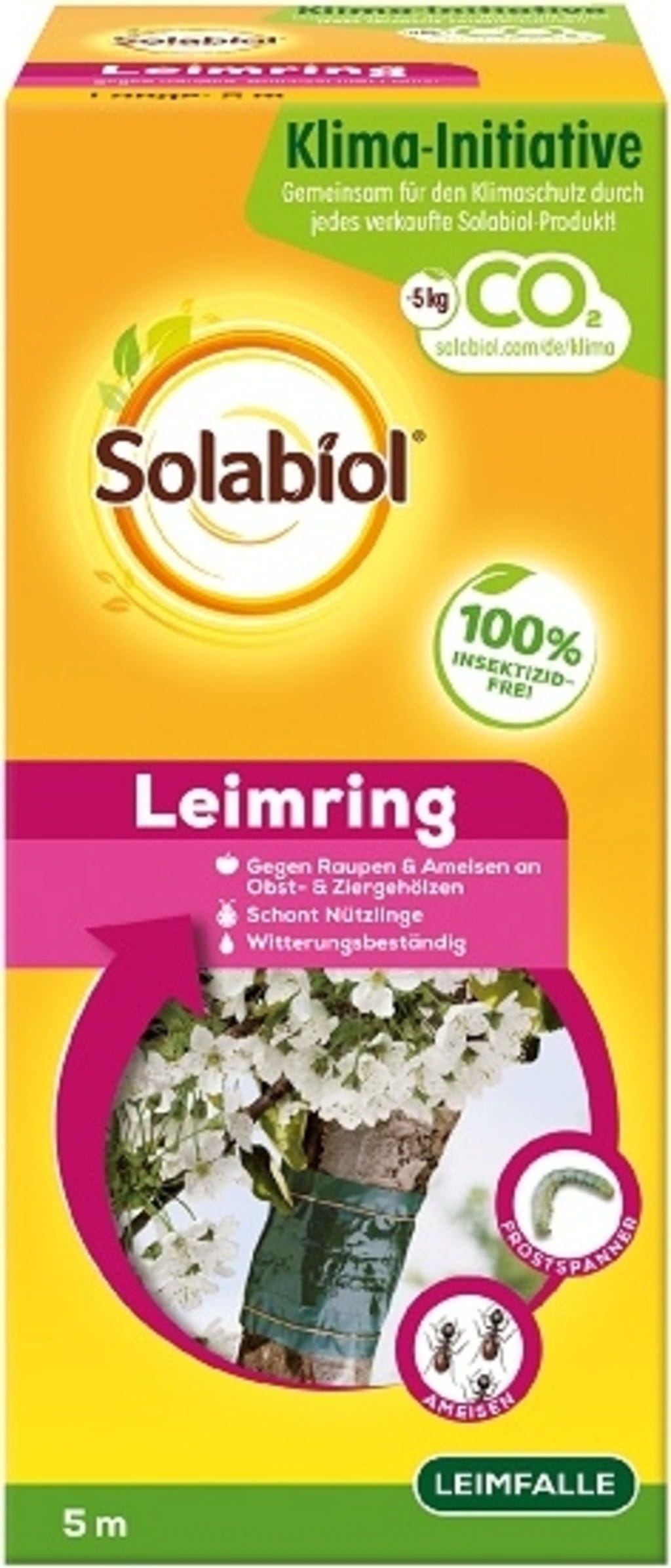 El collar adhesivo para árboles de Solabiol impide de forma fiable que las plagas que trepan por el tronco alcancen la copa. Ya sean polillas hembras de invierno, orugas defoliadoras, pulgones lanígeros u hormigas, actúa sin productos químicos, no se seca y no lo arrastra la lluvia.