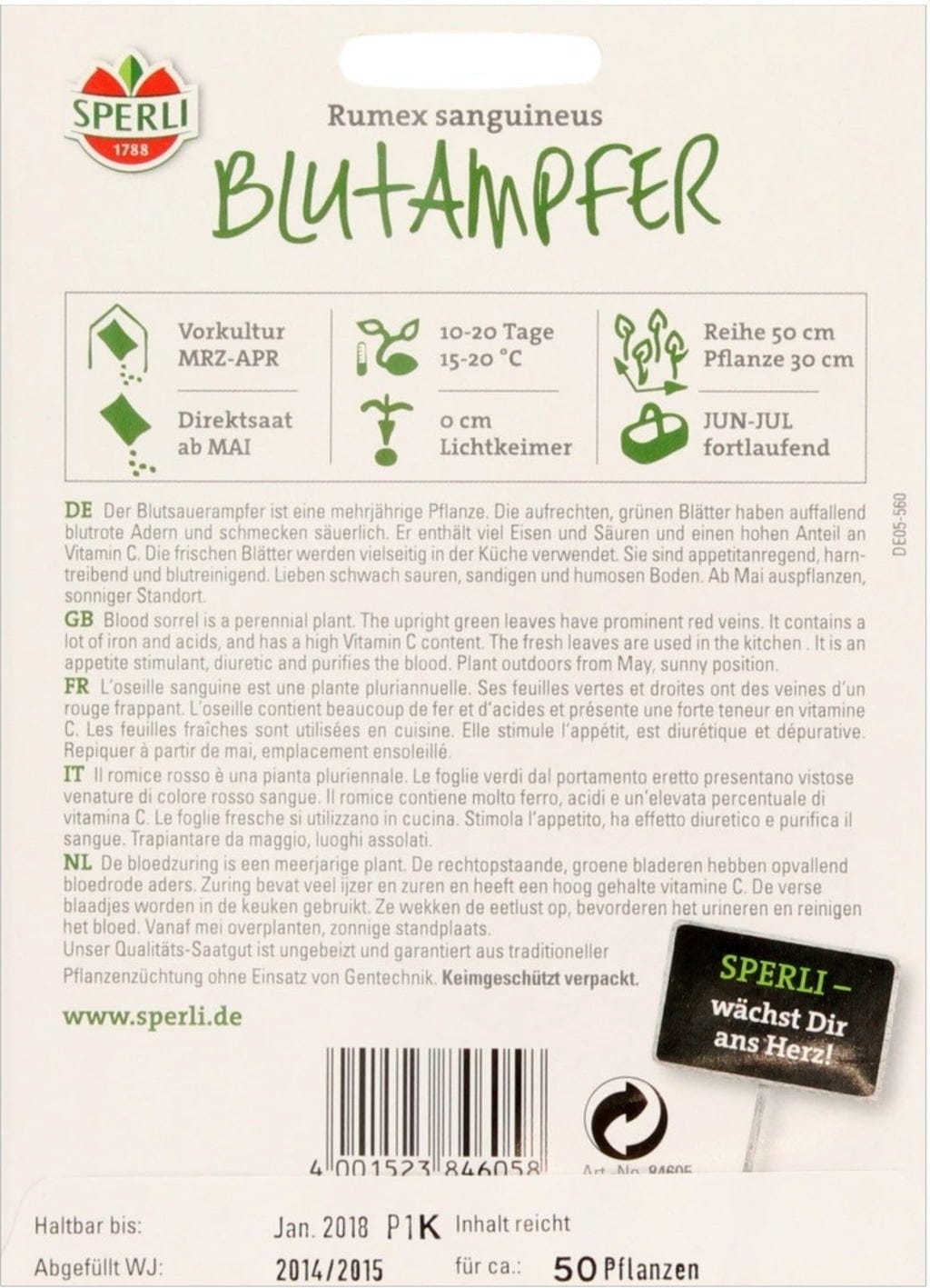 comentarios en español del producto: Acedera de vena roja "Sperli's Essbare Staude"