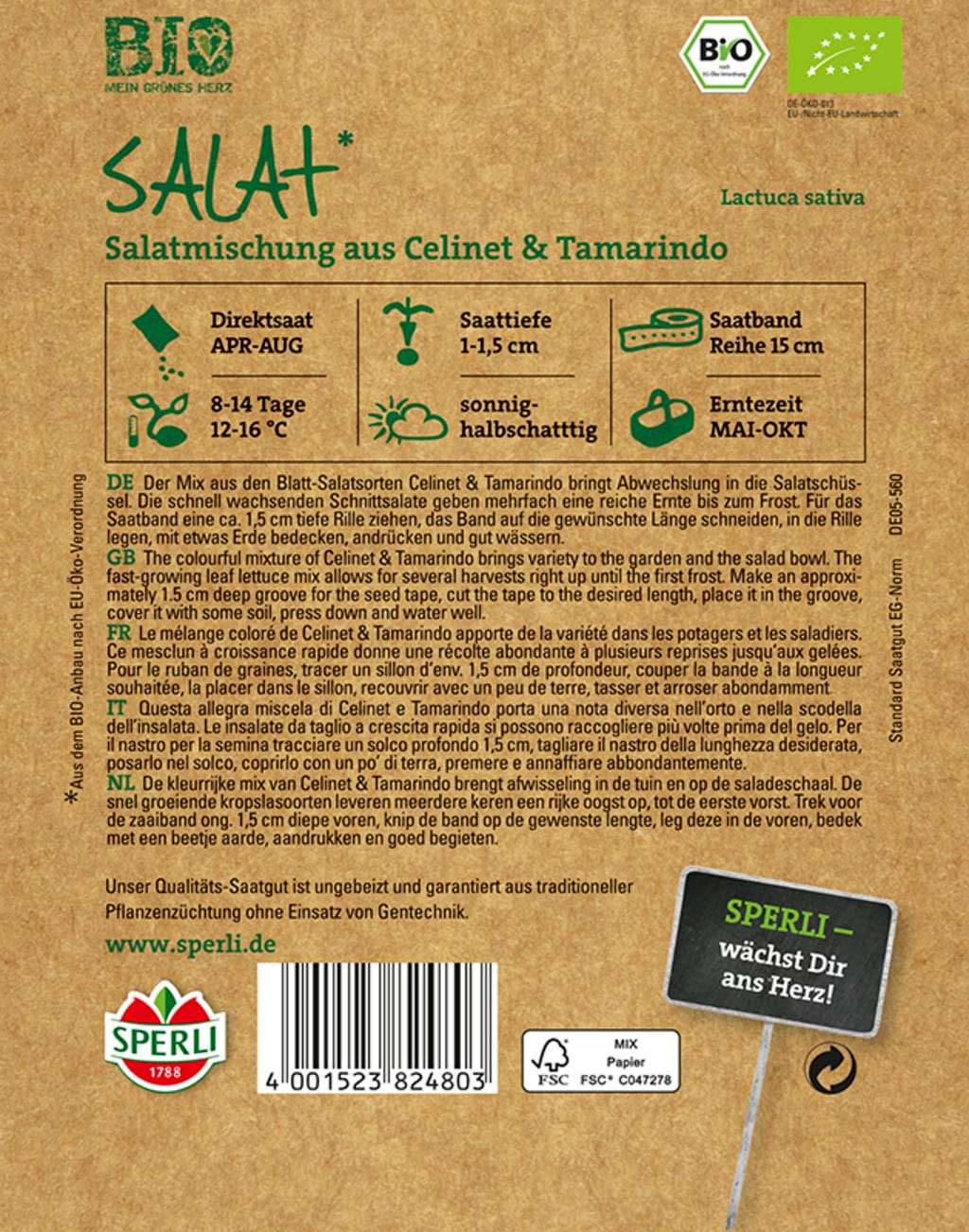 Sperli Cinta de semillas de mezcla de lechugas ecológicas