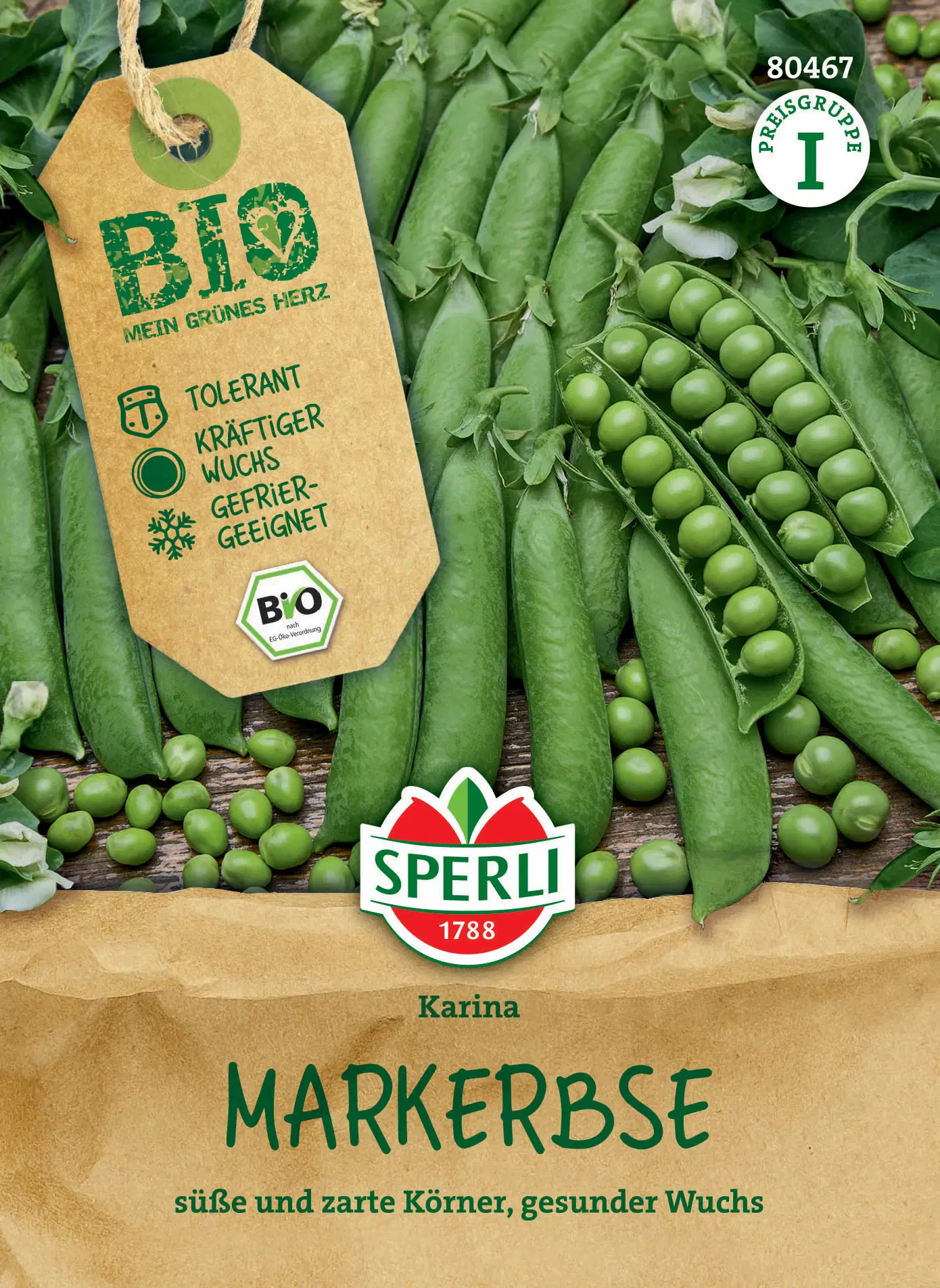 El guisante rugoso BIO „Karina“ de SPERLI convence por sus granos de guisante dulces y tiernos y su crecimiento vigoroso. Se puede cosechar durante un largo periodo de tiempo, de junio a septiembre. Especialmente resistente al marchitamiento por Fusarium y al oídio, esta variedad es apta para el cultivo en campo abierto y en invernadero.