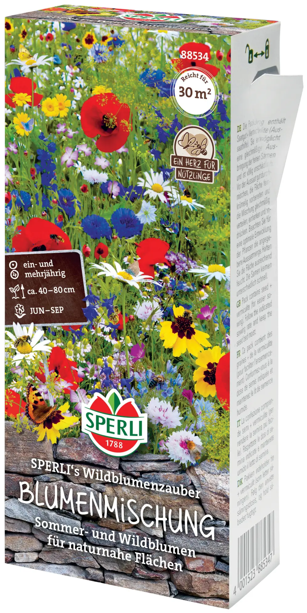 Esta maravillosa mezcla de flores ofrece un verdadero espectáculo natural, ya que se produce un cambio constante a lo largo del verano, así como en los años siguientes. Además, es un paraíso para abejas, abejorros y mariposas.