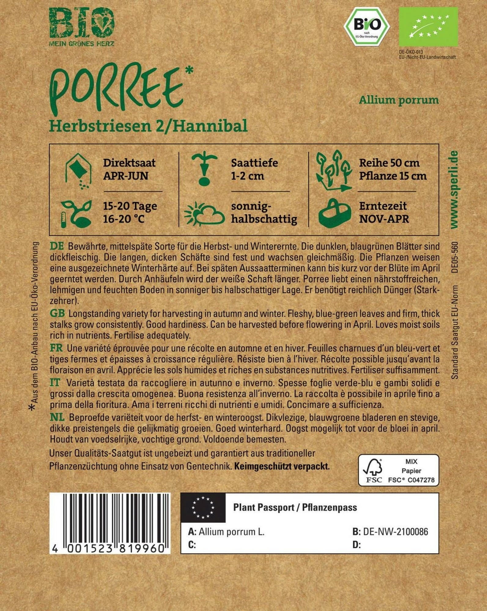 Sperli Puerro ecológico "Herbstriesen 2 / Hannibal"