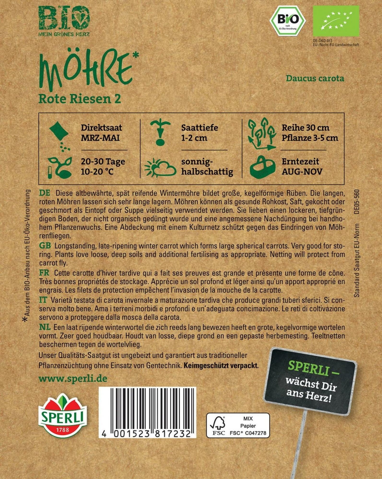 Sperli Zanahoria ecológica "Rote Riesen 2"
