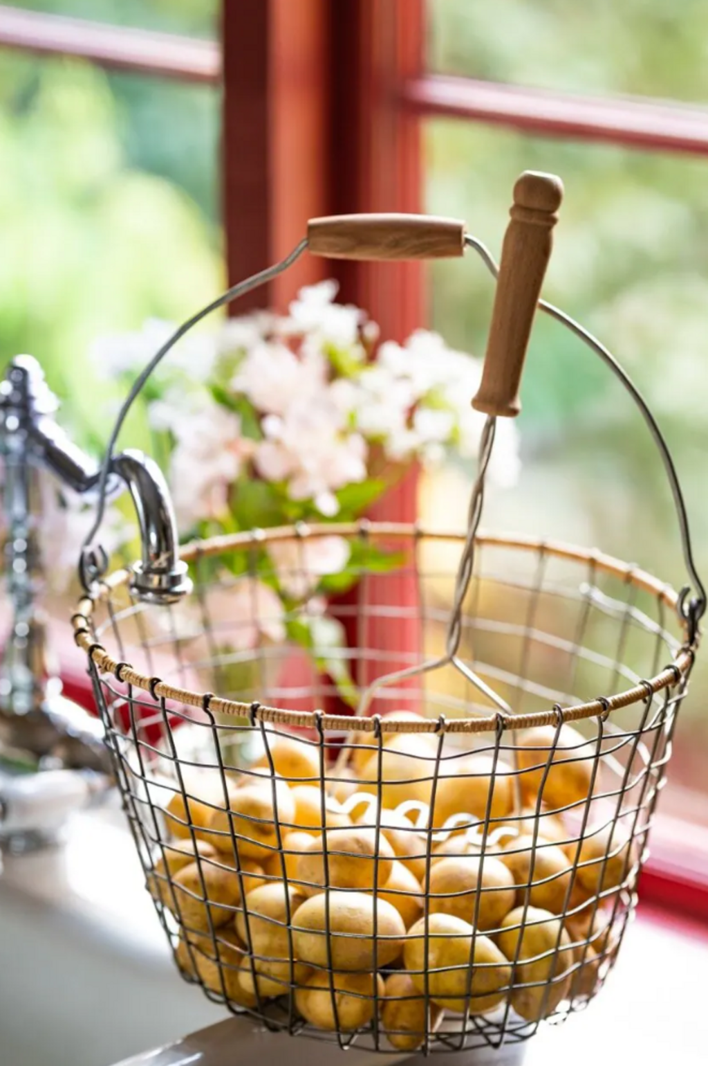 La cesta de alambre Alvar combina funcionalidad con un aspecto atemporal. Gracias a su asa de madera extraíble, es fácil de transportar y muy versátil: ya sea para el almacenamiento en la cocina, el baño o para recolectar frutas, verduras o flores en el jardín.