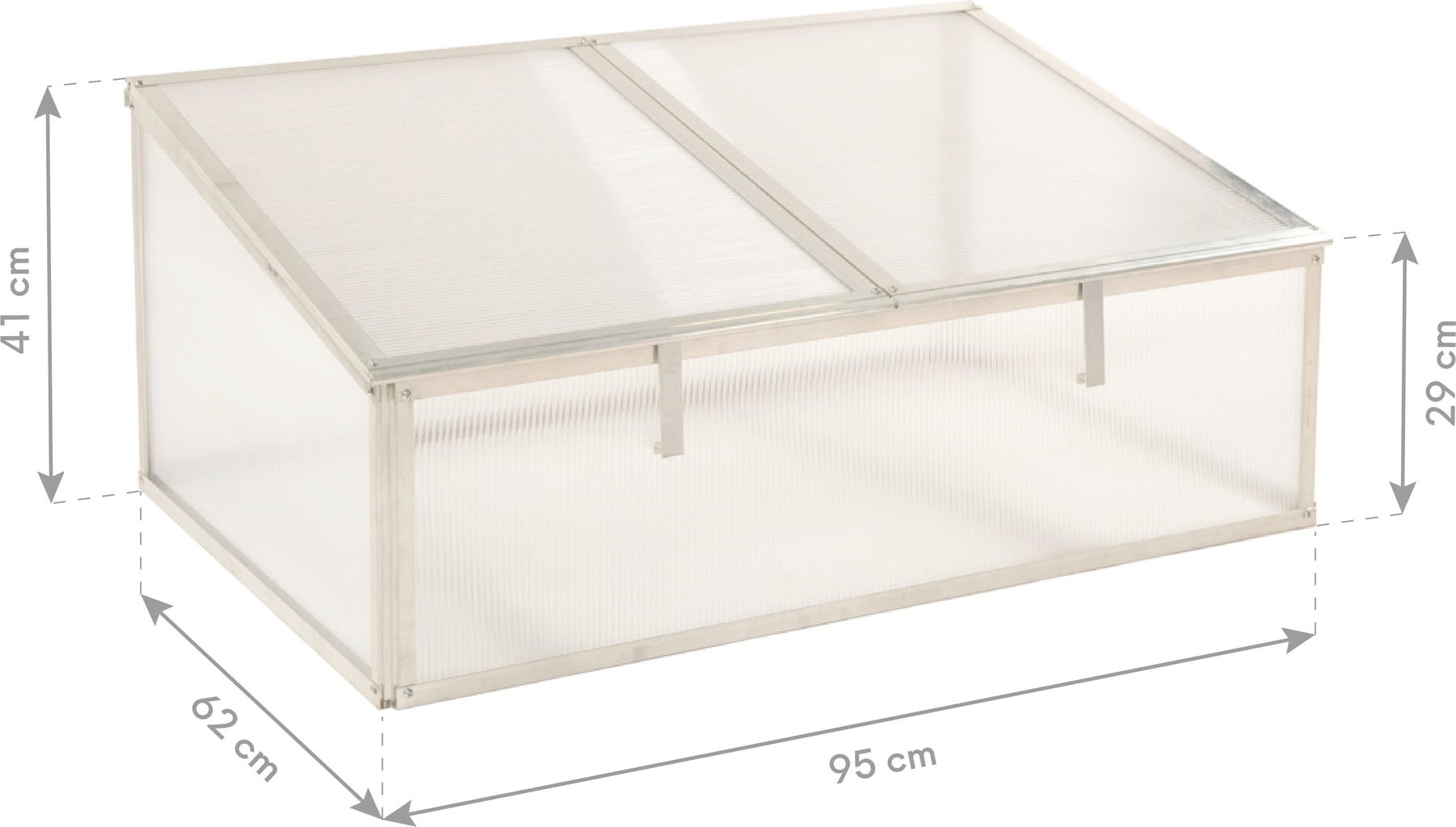 Su estructura de aluminio estable y los paneles de policarbonato de 4 mm de grosor garantizan un entorno de crecimiento óptimo para que tus plantas crezcan espléndidamente desde el principio. La tapa se puede abrir y cerrar según las necesidades individuales de tus plantas, permitiéndote crear el clima perfecto para cada una de ellas.