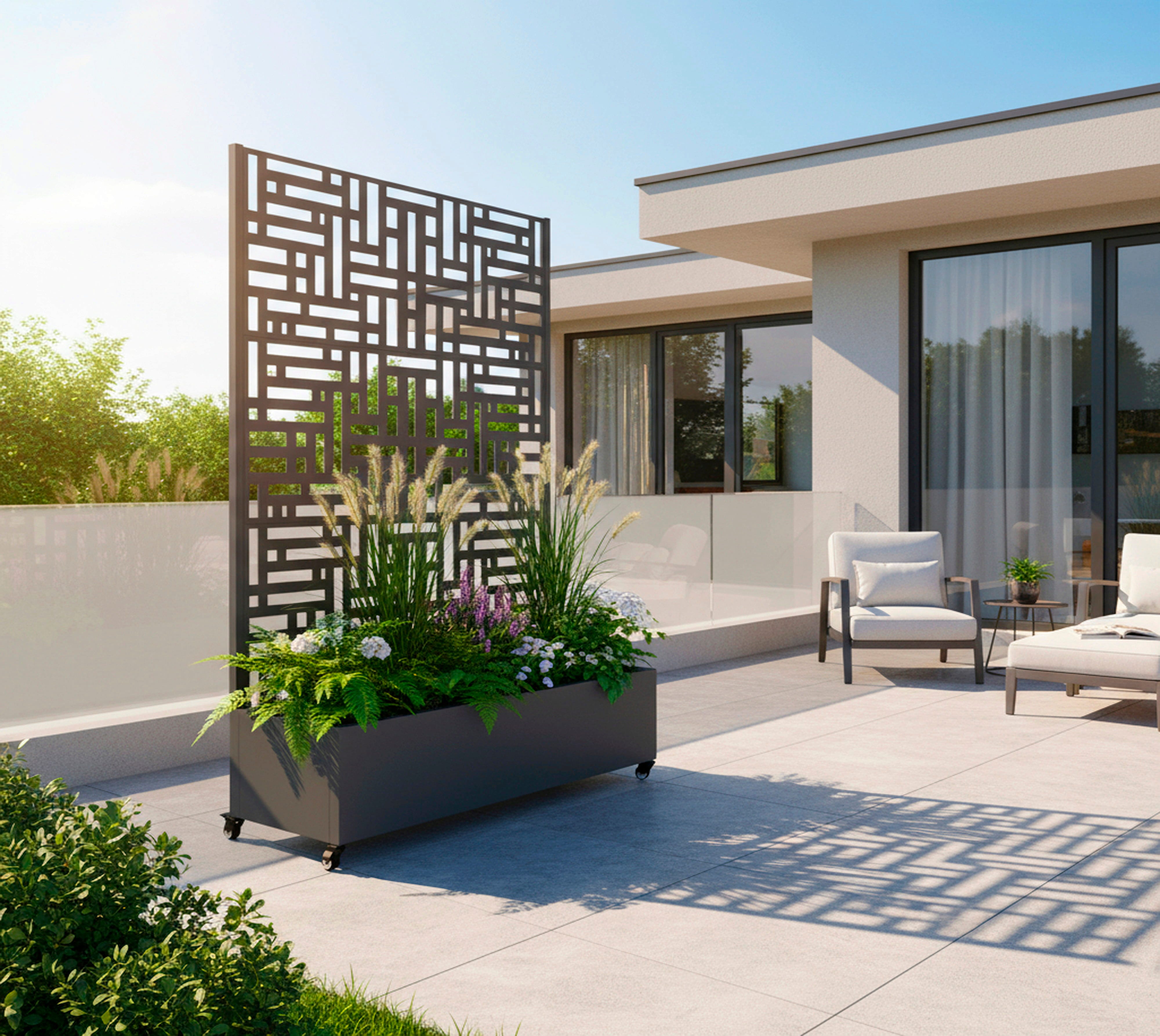 - Coloque varias jardineras Dekora una al lado de la otra para aumentar el efecto de protección visual.